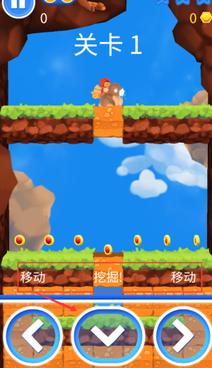4、点击红框移动按钮,控制小熊左右移动挖掘。