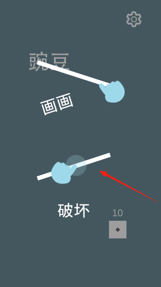 2、界面有白豆相关操作,选破坏功能,按提示用手指滑动白色长条,模拟破坏动作,完成输送画画任务。
