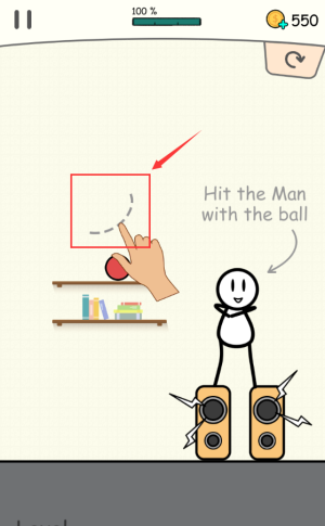3、瞄准红框红色小球,击打火柴人完成关卡任务。