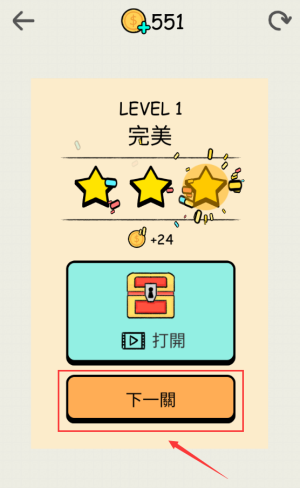 4、点击红框下一关按钮,进入第二关继续挑战。