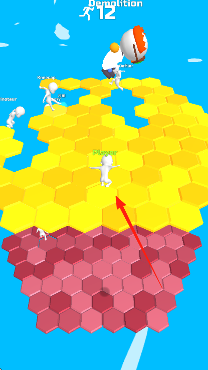 2、在彩色六边形场,占格子,围区域,别让对手如带名字角色侵入,遇Demolition阶段,躲爆炸,保领地,推进游戏,争取胜利。