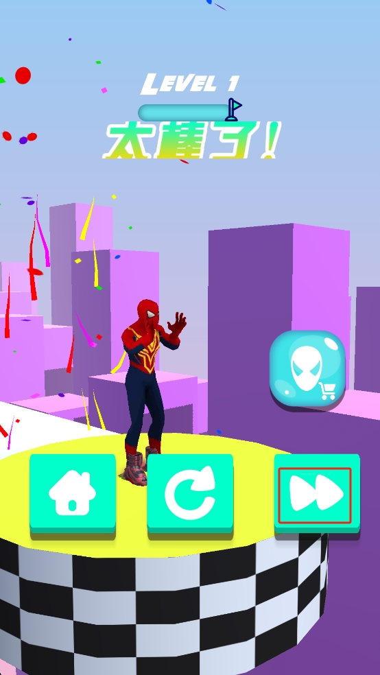 3、成功通关Level1后,点击舞台右侧带有白色箭头的按钮,即可进入下一关,继续挑战难度升级的全新赛道。