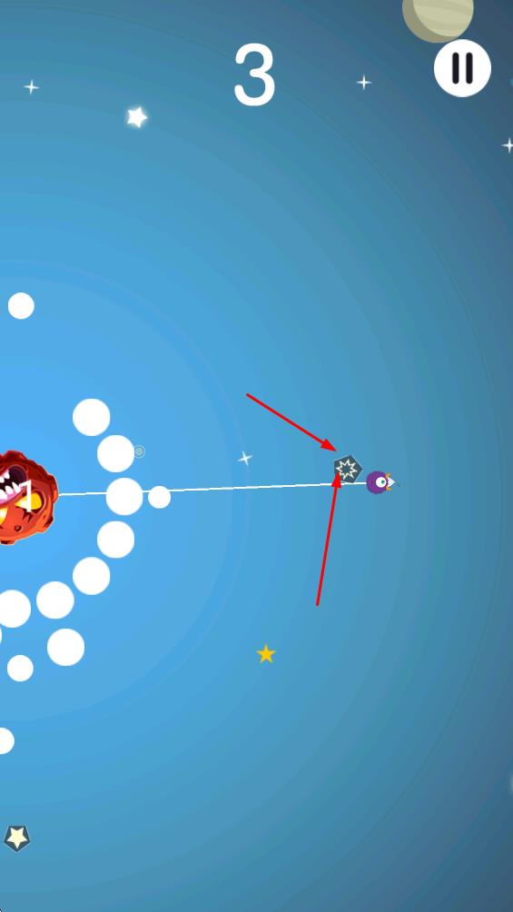 3、规避危险持续前进:前进中需同时应对中心魔王和黑洞的威胁,借助白色球球远离魔王,时刻观察并避开黑洞,通过灵活调整跳跃轨迹,在危险夹缝中持续前进。