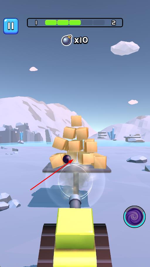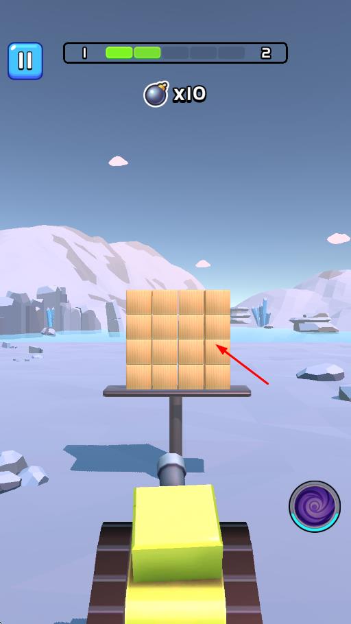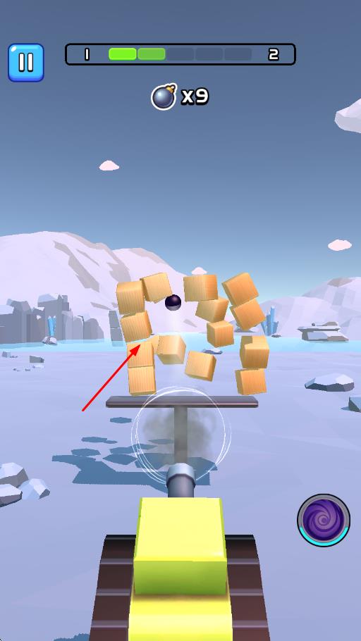 2、观察立方体排列结构,瞄准关键位置发射炮弹,利用爆炸范围触发连锁击毁效果,收集关卡中的奖励道具。