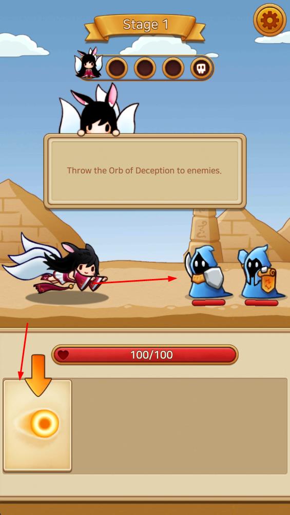 1、进入Stage1关卡,点击下方欺骗之球技能图标,投掷攻击敌人,开启战斗进程。