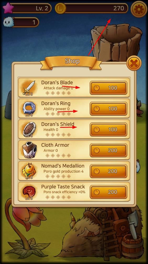3、进入商店界面,消耗金币购买武器、戒指等装备,提升攻击、生命等属性实力。