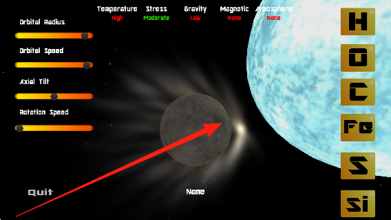 2、培养中途,针对所选星球提升各种属性和元素,观察星球的变化,朝着更适合居住的目标逐步推进。
