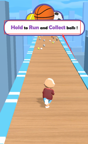 3、长按屏幕奔跑收集球,避开障碍物前进。