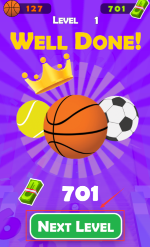 4、点击红框下一关按钮,领取奖励继续挑战。