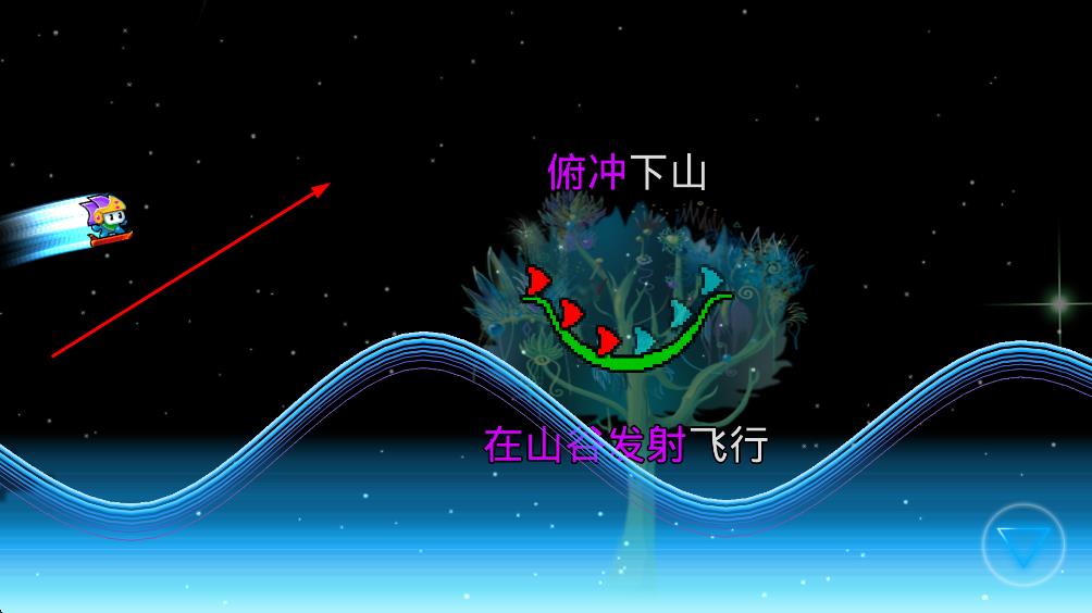 2、借俯冲惯性,在山谷处实现飞行,跨越地形障碍,推进关卡进程。