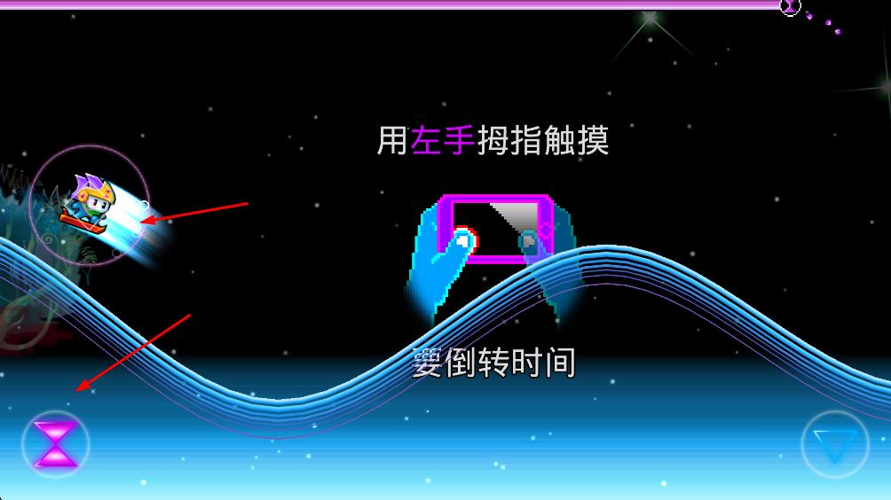 3、操作失误时,左手拇指触碰左下按钮倒转时间,重新尝试动作,调整策略。