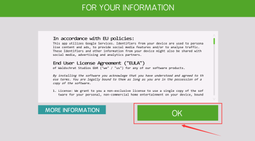 2、点击红框OK按钮,确认同意用户许可协议条款。