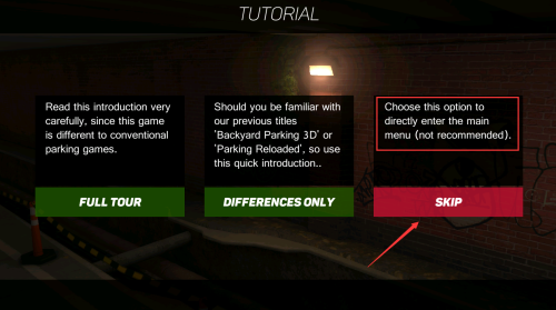 4、点击红框SKIP按钮,跳过教程直接进入主菜单。