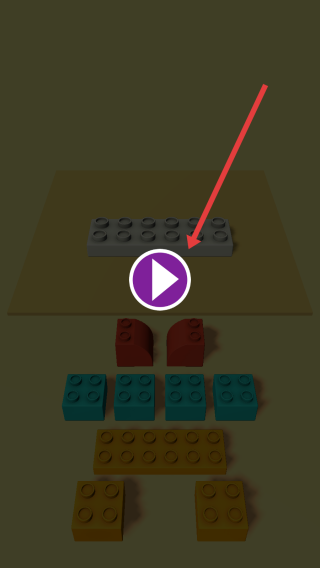 1、点击紫色播放按钮,进入Level-1搭建关卡,利用下方红、蓝、棕等颜色积木,准备按指引搭建指定造型。