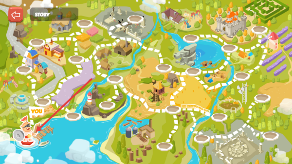2、在故事模式地图中,跟随路径指引,选择起点区域开始探索,逐步解锁城堡、湖泊等场景,推进剧情进程。