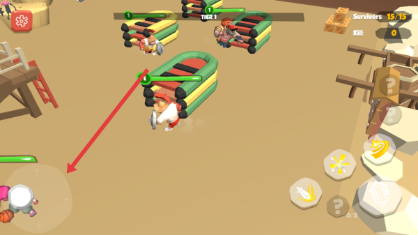 3、进入战斗场景后,通过左侧虚拟摇杆操控角色移动,配合技能按钮攻击敌人,保护幸存者,完成关卡战斗任务。
