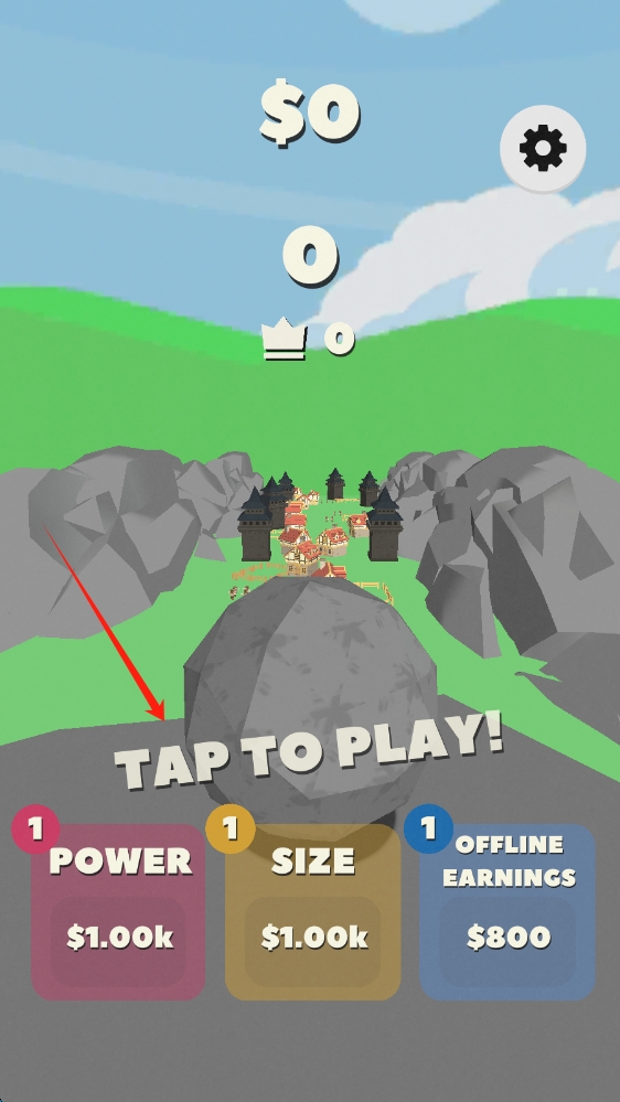 1、点击主界面TAP-TO-PLAY!,操控滚石开始摧毁路径上的建筑,点击屏幕开始当前的游戏。