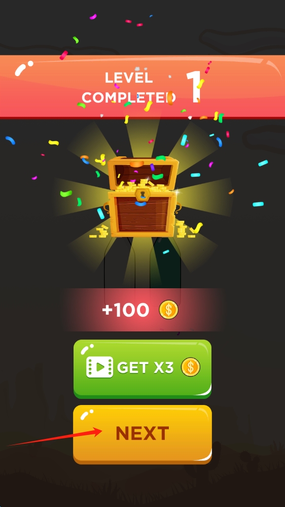 2、通关后点击黄色NEXT按钮,进入下一个关卡挑战,点击按钮进入到游戏的下一关。