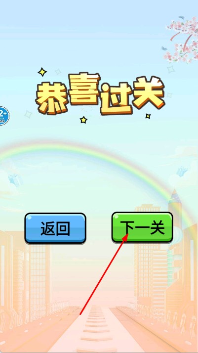 3、成功完成关卡任务后,显示恭喜过关,点击下一关,继续挑战其他关卡。