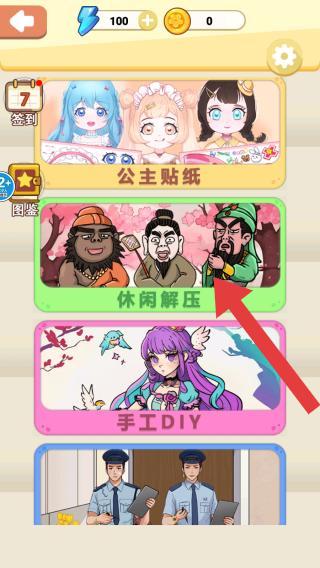 1、画面呈现了游戏模式的选择页面,玩家需要在公主贴纸、休闲解压、手工DIY中进行选择,可根据喜好进行操作。