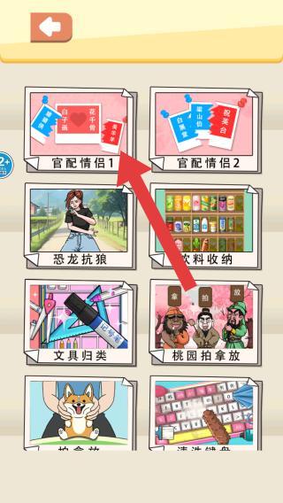 2、进入到休闲解压中会发现更多精彩的内容,可以点击官配情侣1进入到游戏场景内,一步一步往后进行游玩。