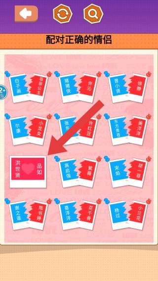 3、需要根据任务提示配对正确的情侣,撕扯表示不是正确的情侣,玩家需要谨慎操作,全部配对完才能够获得胜利。