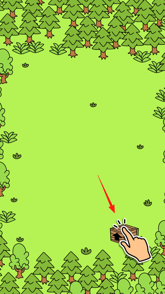 1、进入游戏场景,看到右下角有个木箱,按提示点它,点木箱后,会有新东西出现,接着就能继续探索这片绿色森林场景啦,看看木箱里藏啥惊喜。