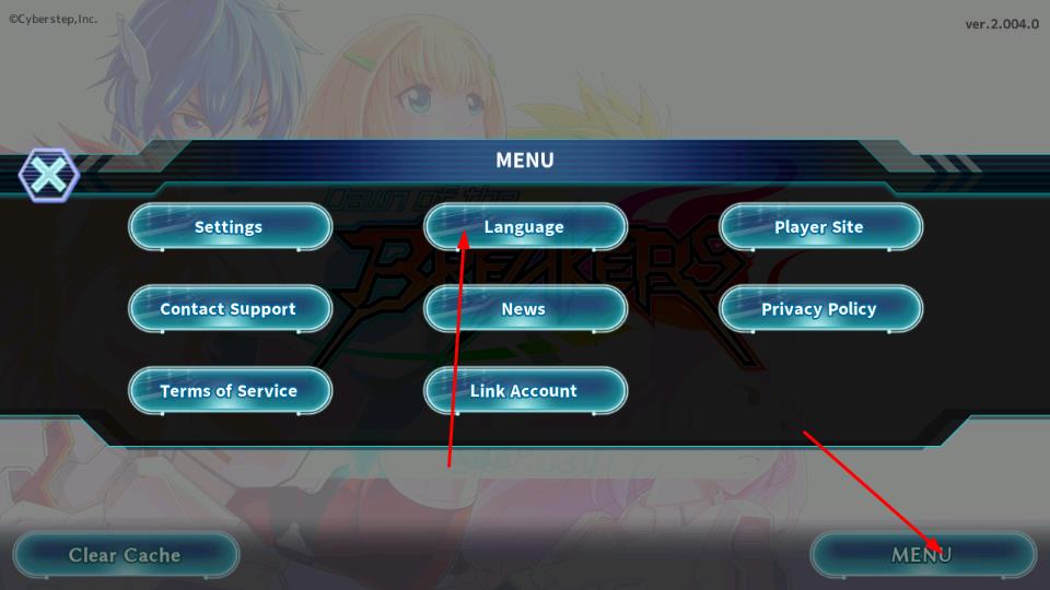 1、找到右下角标注MENU的按钮并点击,进入功能菜单界面后,在排列的选项中定位到Language按钮,点击该按钮以进入语言设置环节,这是调整游戏语言的起始操作。