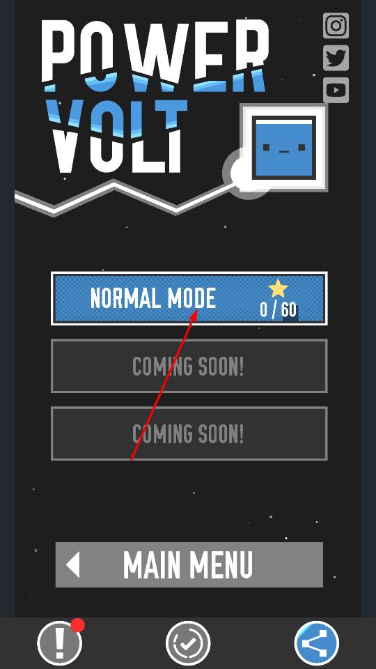 1、定位上方标注NORMAL MODE且附带0/60进度标识的蓝色按钮,点击该按钮,正式进入游戏关卡,开启挑战进程,此为体验游戏核心内容的起始操作。