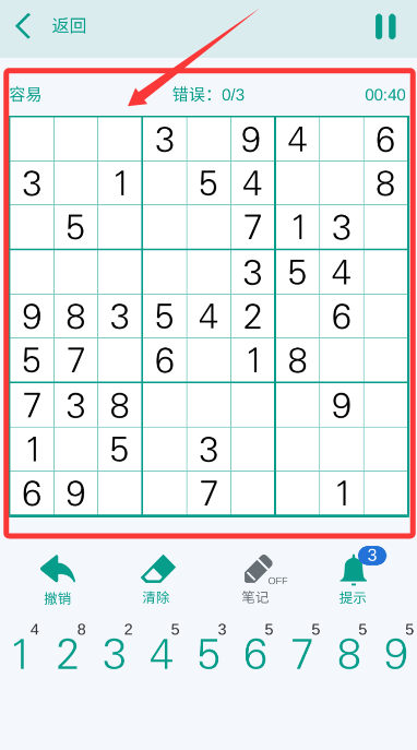 4、可启用"辅助提示"功能,系统将自动填补一个正确数字作为参考。