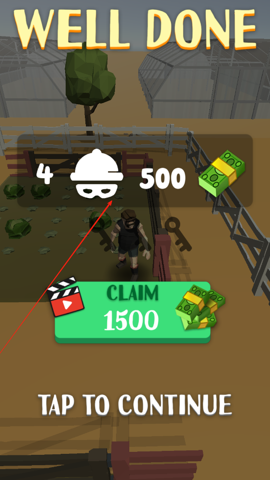 2、留意上方需要完成的任务数量和时间,及时调整移动的路线,避开围栏等障碍,快速绕路接近盗贼,成功抓捕增加分数和钱币。