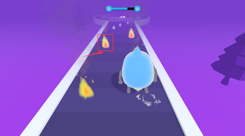 3、避开红框圆形障碍,保持蓝水滴火焰冲刺状态。