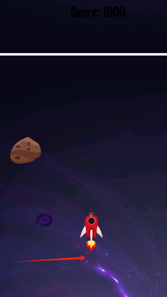 2、飞行时持续关注得分变化,灵活调整火箭方向,避开陨石等阻碍,积累分数,滑动移动飞船。
