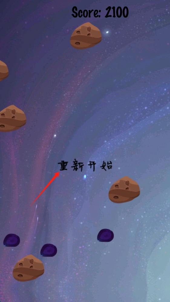 3、若碰撞失败,点击重新开始按钮,再次尝试操控火箭飞行,挑战更高分数,点击重开。