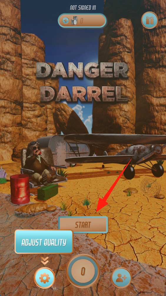 1、点击START按钮,进入Danger-Darrel游戏,开启荒漠峡谷飞行挑战,点击开始游戏。