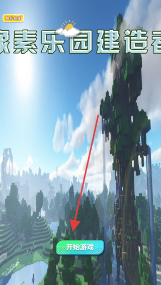 1、进入像素乐园建造者游戏界面,点击开始游戏按钮,开启像素世界建造冒险。