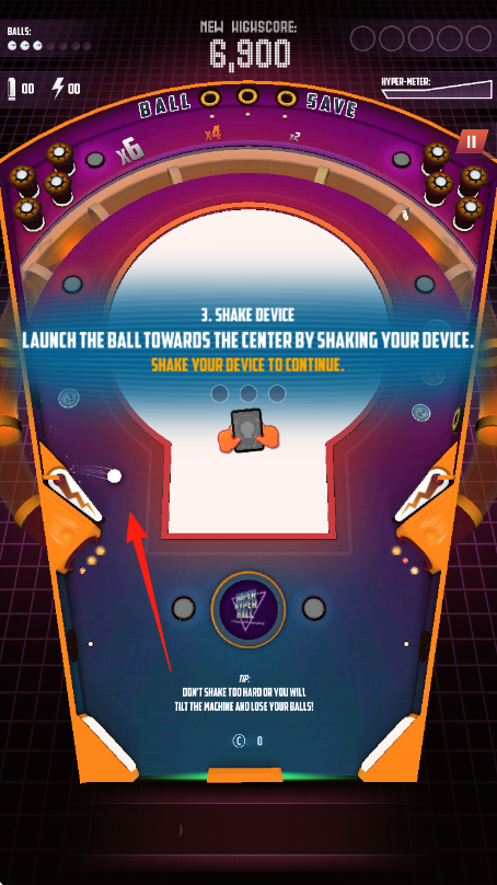 3、再次轻晃设备,将弹珠射向中心,遵循提示,把控晃动机身幅度,持续游戏。