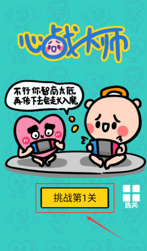 2、点击红框挑战按钮,开始心战大师游戏第一关。