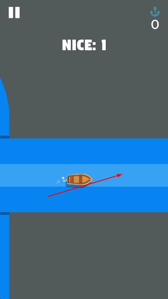 2、行驶至转弯处时,迅速点击拐角处的圆球,将其与小船连接,借助连接完成流畅漂移,保持船身稳定继续前行。