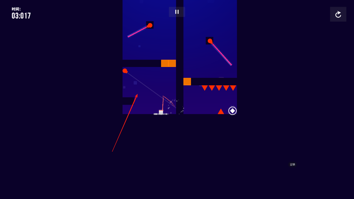 2、障碍组合应对:不同关卡会出现障碍的随机组合,如锯齿与激光同时出现时,需先判断优先级,选择先躲避威胁更大的障碍,再处理次一级危险,考验临场决策能力。