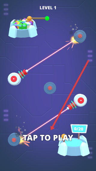 1、在Level1界面,点击TAP-TO-PLAY,启动游戏,进入绳索连接挑战,目标运输小球到下方容器。