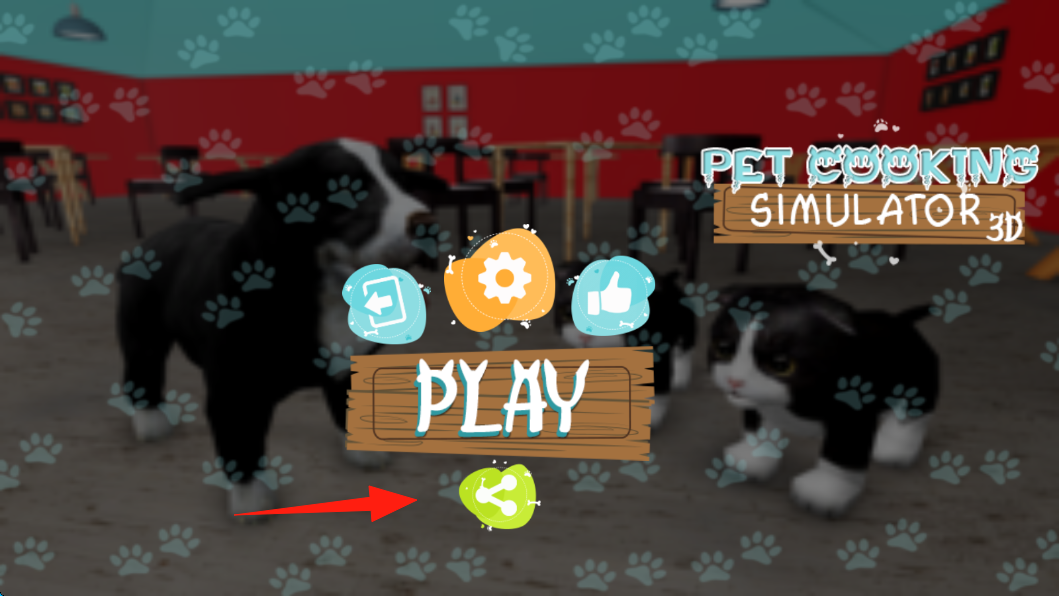 1、点击木质PLAY按钮,进入Pet-Cooking-Simulator-3D游戏,开启宠物烹饪模拟之旅。