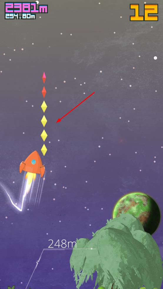 2、收集金币强化火箭:前进途中收集散落的金币,积累到一定数量后可升级火箭,提升其速度、抗撞能力等性能,强化后的火箭能更好应对复杂障碍,为探索更远距离。