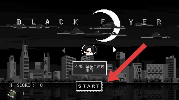 1、画面呈现暗黑的画面背景风格,有文字提示:点击小乌龟会惹它生气,所以需要点击START进入到场景内。