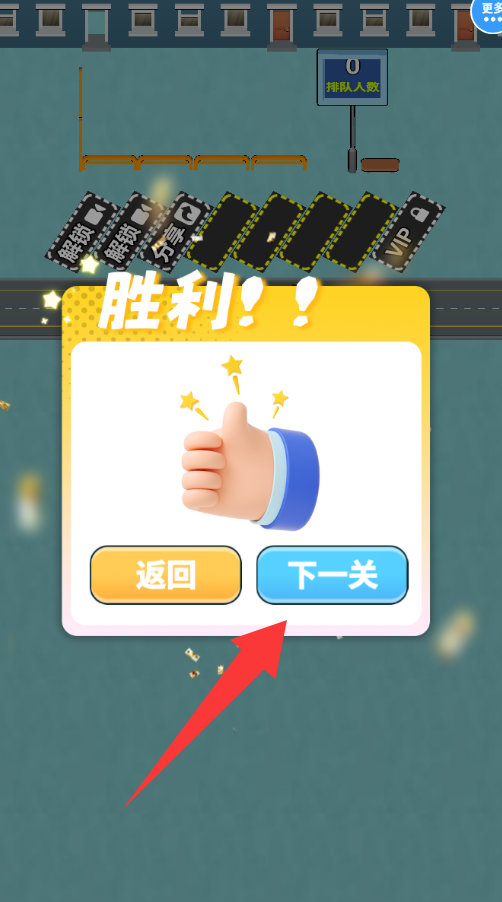 4、恭喜你通关了,给个大拇指你,点击下一关继续。