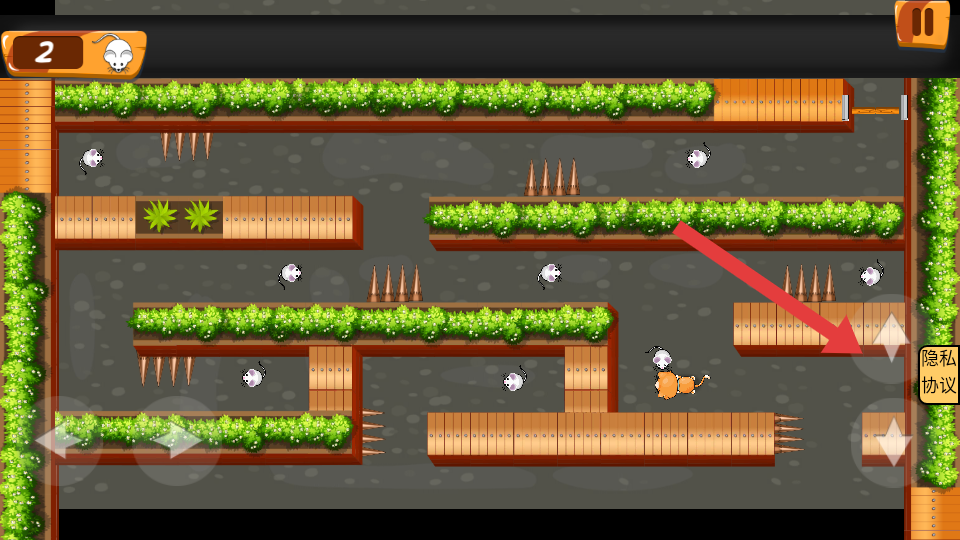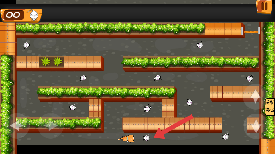 3、后续的路段,利用迷宫通道,灵活切换左右方向键,逐个追捕老鼠,积累到捕捉的数量。