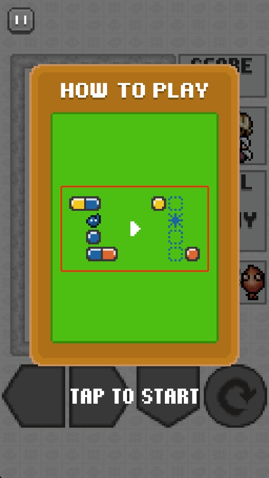 1、游戏开局弹出HOW TO PLAY教学界面,观察绿色区域内胶囊、圆球等元素,我们需要先理解组合、移动的规则。