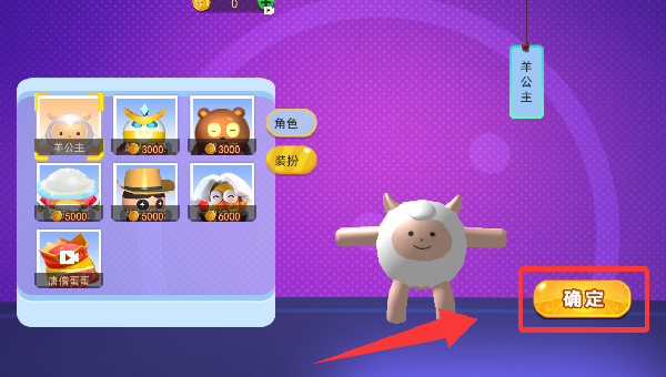 2、进入选角色装扮,点击羊公主确认并进入。