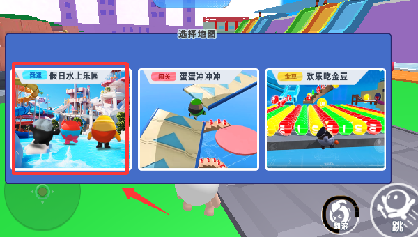 4、点击红色框框里的假日水上乐园地图并进入。