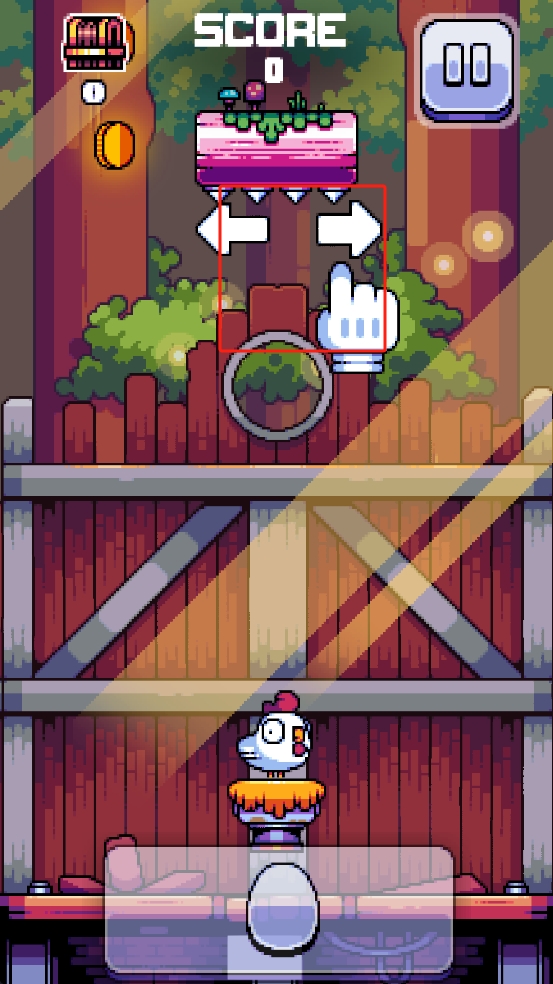 1、精准操控堆叠:通过左右滑动控制小鸡移动,点击屏幕让其跳跃,在蛋块掉落瞬间调整位置,将蛋块平稳叠放在已有蛋塔上,保持整体平衡。